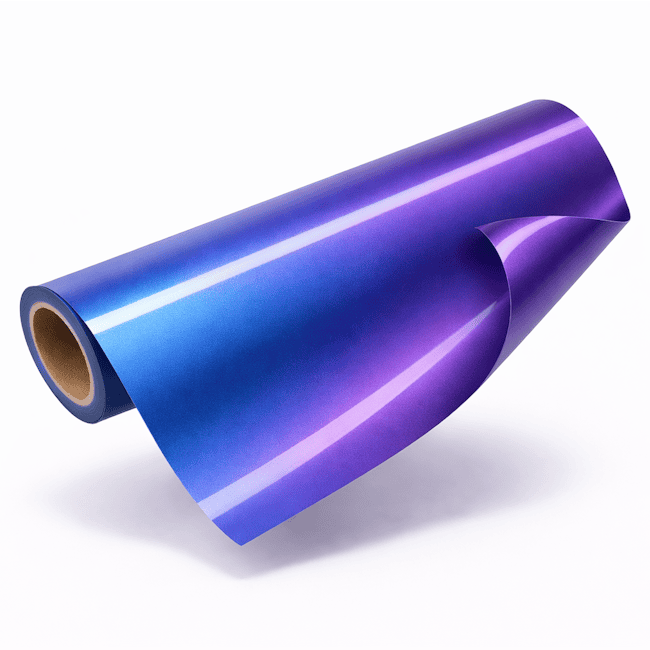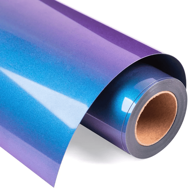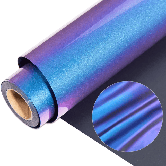 Le Flex Thermocollant Caméléon est le flex qui change de couleur selon l'angle de vue et la lumière. Son effet bicolore crée des reflets qui passent du bleu au violet, apportant une touche d'originalité fascinante à n'importe quel textile.